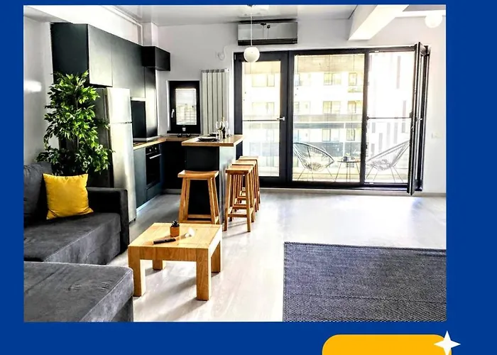 Populära attraktioner i området inkluderar Plaja Tomis, ungefär 4 km bort. Sevärdheterna inkluderar Albatros Open Picture Theatre, cirka 15 minuter med bil från den här 40 m² stora lägenheten. Bulevardul Mamaia ligger inom 4,1 km från den strandnära lägenheten.
